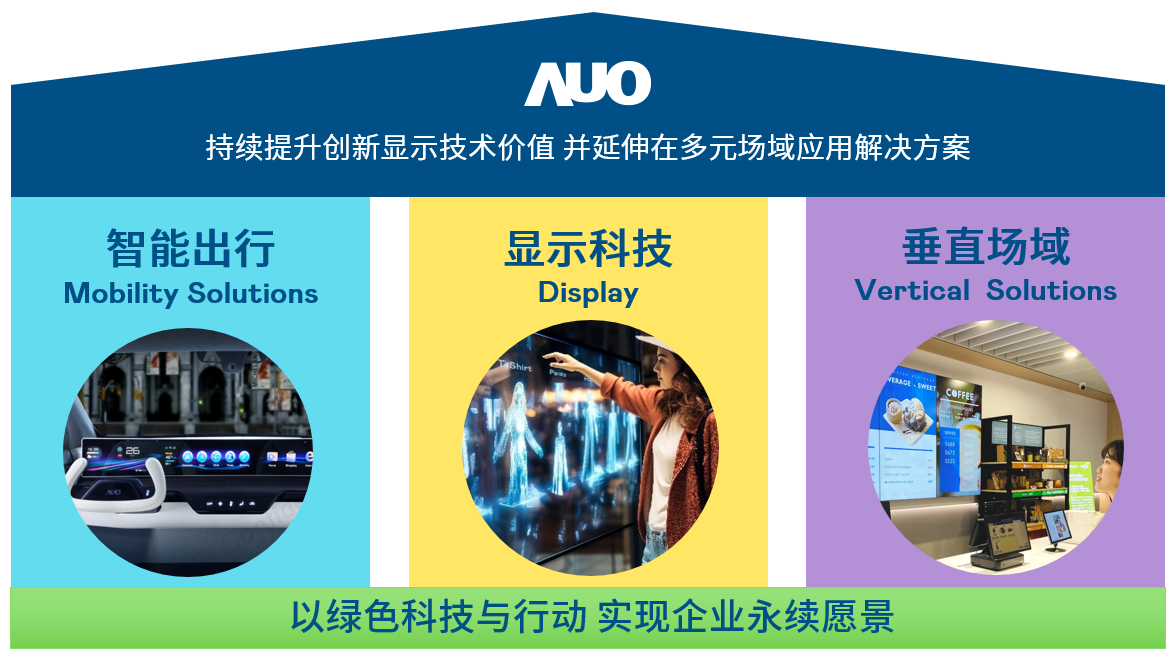 友达专精面板研发与制造,开发高值化及差异化产品应用,以丰沛的研发能量与创新技术稳居业界领先地位,并以深厚的显示技术为核心,结合AIoT致力成为各场域的解决方案商。友达光电积极推动双轴转型,以显示科技、智慧移动、垂直场域三大永续营运支柱,持续提升创新显示技术价值,延伸布局多元场域应用解决方案。我们整合软硬体、云端与服务平台,提供一站式服务,以满足不同场域的需求。我们期望透过合作、互补、共创的模式与各界伙伴共筑智慧物联网生态圈,引领实现未来智慧生活。